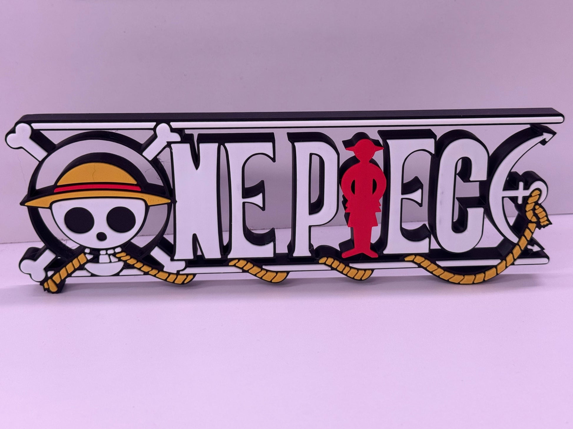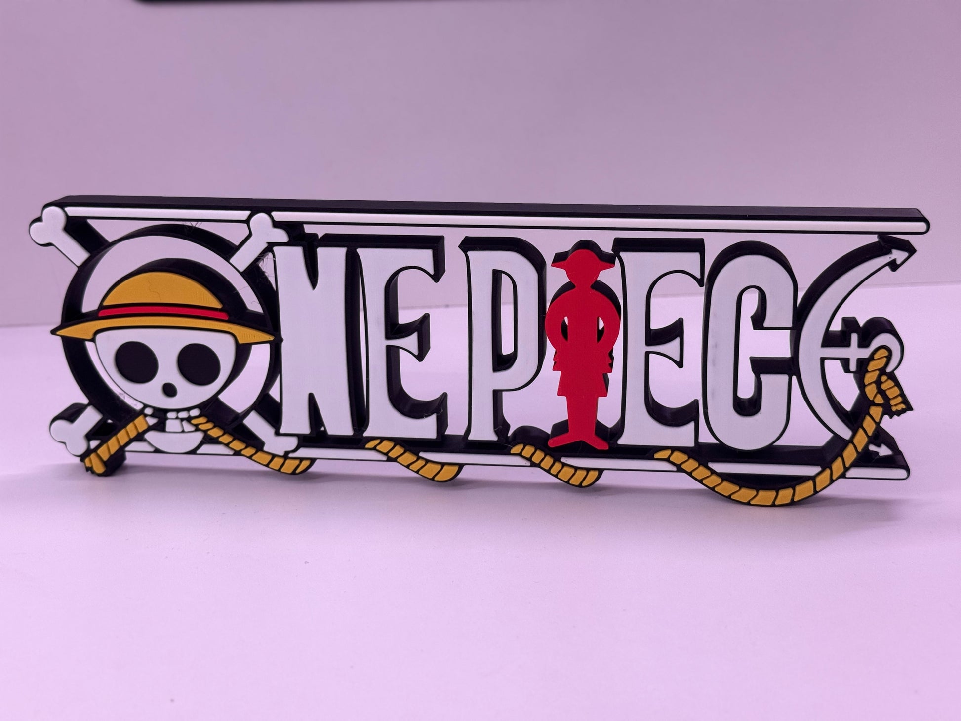 3D Printed One Piece Logo Display Stand – Anime Desk Decor, Luffy Pirate Logo Sign, One Piece Fan Gift, Manga Room Decoration